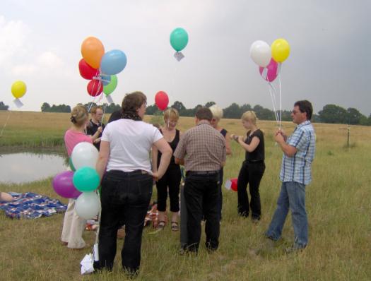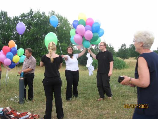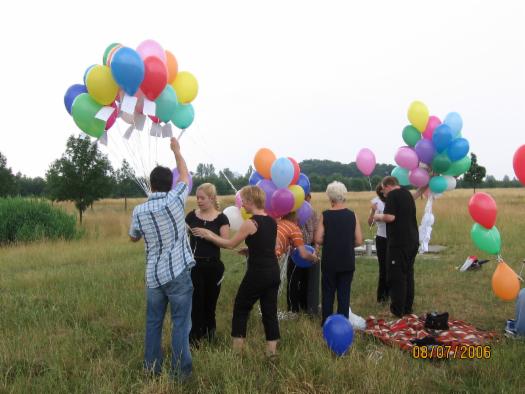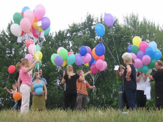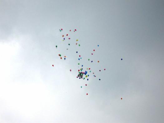 Damit haben wir nun also auch die letzten Wünsche an Sabine gen Himmel gesendet. Wieder so ein Abschluss, wieder so ein letzter "Akt", wieder so ein Loslassen... Und wir haben die Luftballons losgelassen, haben sie fliegen lassen. War es erst eine fröhliche, ungezwungene Atmosphähre, so haben wir alle glaube ich irgendwann Sabines Anwesenheit gespürt. (sogar der kleine aufgedrehte Henry :-) )